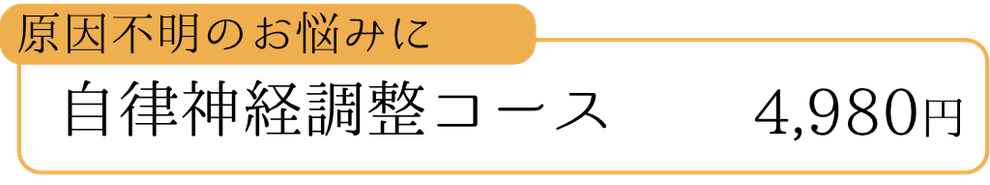 こちらは原因不明の症状、自律神経調整に特化したコースです。当院の技術では、お顔の神経に働きかけることで自律神経のバランスを整えることが可能です。